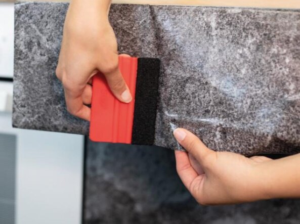 - Gebruik een rakel met vilt om het folie glad te strijken.