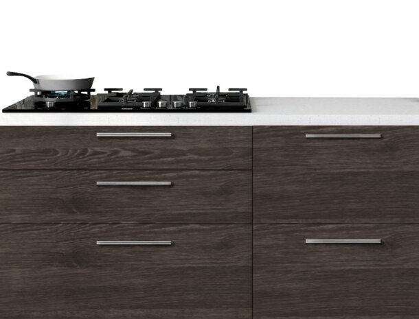 Plakfolie met een donkeren hout look. Geschikt voor je keuken, meubels en interieur. De breedte is 45cm, de lengte kies je zelf.
