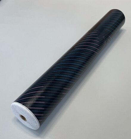 Wil je de wanden van je woning, deuren of kasten van een retro look voorzien? Kies dan voor dit zwarte plakfolie met strepen in retro look. Het zelfklevende folie is 45cm breed en 200cm lang. - Plakfolie zwart met strepen - Toepasbaar op gladde en vetvrije ondergrond - Standaard breedte: 45 centimeter - Lengte: circa 200 centimeter - De strepen zijn blauw en paars/roze van kleur