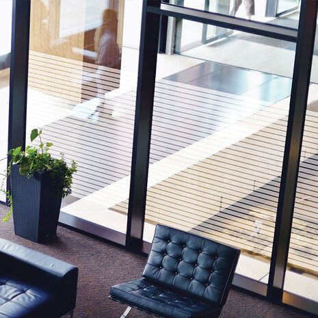 Zelfklevend raamfolie met strakke print van rechte strepen. De breedte is 90cm, de lengte kies je zelf! - Zelfklevend - Breedte: 90cm - Lengte: van 50cm tot 30m. - Prijs: Weergegeven prijs is per halve meter