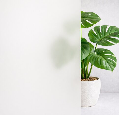 Dit is een raamfolie met wit melkglas effect. Het zelfkleeffolie werkt erg goed tegen inkijk. Een silhouette van een bloemenvaas kun je nog wel zien. Maar objecten die iets verder van het raam af staan, kun je niet meer zien. Blaft je hond constant als hij door het raam mensen ziet lopen? Plak een stukje folie op het raam en creëer rust in huis. Dit is namelijk perfect