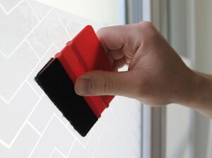 - Gebruik een rakel met vilt om het folie glad te strijken.