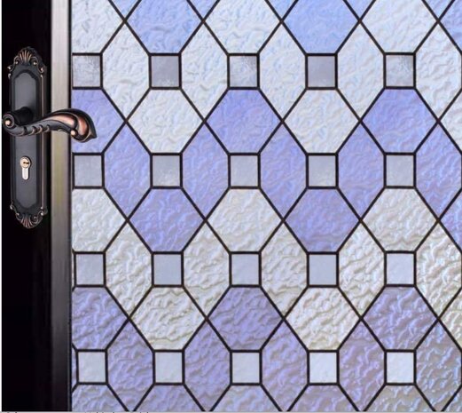 Raamfolie statisch met glas in lood patroon. Vermindert inkijk aanzienlijk. De breedte is 45cm, de lengte kies je zelf.