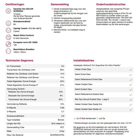 Dit veiligheidsfolie is een raamfolie dat er voor zorgt dat glaswerk niet uiteen spat als er met een voorwerp tegenaan wordt gegooid of als er een persoon tegen aan valt. Door het folie blijven de glasscherven in het raamwerk hangen en is de kans op ernstig letsel veel kleiner. Het veiligheidsfolie is getest volgens Europese normen en wordt geleverd voor zelfmontage. Veiligheidsfolie 200 micron, sterk en transparant Veiligheidsfolie wordt veel ingezet als doorvalbeveiliging bij scholen, kinderdagverblijven, openbaar vervoer en recreatiebedrijven.Doorvalveilig, anti-vandalisme, anti-snelkraak, inbraak vertragend en veilig in het geval van een explosie, dat zijn enkele positieve punten die het gebruik van veiligheidsfolie op ramen met zich mee brengt. Dit folie heeft een dikte van 200 micron, is transparant en extra sterk. Veiligheidsfolie of gelaagd glas kopen? Veiligheidsfolie is veel goedkoper als je het vergelijkt met gehard of gelaagd glas! Aangebracht op geharde en gelaagde ramen zal deze vorm van glasbeveiliging zorgen voor extra versterking en het bijeenhouden van onverhoopt rondvliegende splinters. Raamfolie tegen doorval en glasscherven Dit veiligheidsfolie wordt ook wel doorvalsbeveiligingsfolie of inbraakwerende folie genoemd. Het is voor meerdere doeleinden toepasbaar. De folie heeft dezelfde werking als gelaagd glas. Voor bestaande beglazing is folie vele malen goedkoper dan het vervangen door gelaagd glas. Veiligheidsfolie voorkomt dat, als het glas breekt, er splinters vanaf komen. De splinters zitten, bij wijze van spreken, achter de folie opgesloten. Mocht een kind onverhoopt tegen een ruit aan vallen dan zorgt de folie ervoor dat het kind geen ernstige verwondingen oploopt. Kleurloos raamfolie Het kleurloze doorvalbeveiliging folie pas je toe op ramen aan de binnenkant van het gebouw. Hiervoor gebruik je wat water met een klein beetje sop. Zorg ervoor dat het raam 100% schoon is. Dus geheel stof en vet vrij. Pas dan zal de werking optimaal zijn. Gebruik je het folie op polycarbonaat? Dan kunnen er luchtbellen ontstaan. Voor welke ramen is het veiligheidsfolie geschikt? Het veiligheidsfolie is geschikt voor elk type raam. Het dient aan de binnenzijde van het raam aangebracht te worden. Kan het veiligheidsfolie gecombineerd worden met een andere raamfolie? Ja, het veiligheidsfolie kan gecombineerd worden met andere raamfolies. Voor een privacy effect kun je bijvoorbeeld een gezandstraalde of melkglas raamfolie over het veiligheidsfolie heen aanbrengen. Houd er wel rekening mee dat het veiligheidsfolie eerst goed moet drogen. Vaak betreft het een droogtijd van 2 tot 4 weken. Wordt het water bij het aanbrengen niet voldoende verwijderd dan kan een langere droogtijd van toepassing zijn, maximaal 6 maanden. Veiligheidsfolie op maat Op een hele rol veiligheidsfolie zit 30 meter. Niet iedereen heeft 30 meter raamfolie nodig. Daarom snijden wij het veiligheidsfolie op maat in staffels van 50cm. Zo betaal je alleen voor wat je nodig hebt. Heb je bijvoorbeeld 2 meter folie aan één stuk nodig? Dan kies je voor de afmeting: 200cm. Wij hebben veiligheidsfolie op voorraad en kunnen (ook grote hoeveelheden) vaak direct leveren.