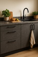 Hoge kwaliteit wrapfolie met antraciet steenlook. Ideaal voor interieur en keuken. De breedte is 122cm, de lengte kies je zelf!