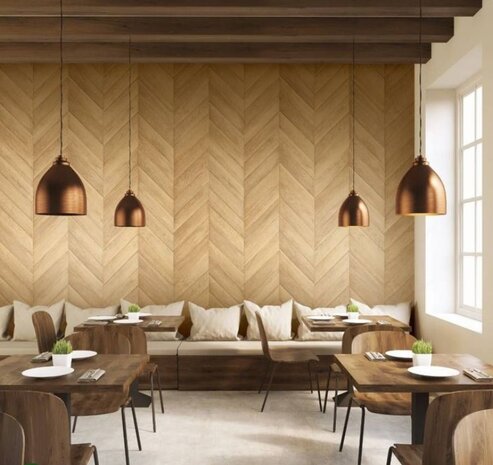 Hoge kwaliteit wrapfolie met prachtige houten visgraat look. Ideaal voor interieur en keuken. De breedte is 122cm, de lengte kies je zelf!