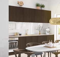 Dit wrapfolie is geschikt voor alle gladde objecten in je interieur. Door de breedte (122cm) kun je ook grote vlakken beplakken. Het folie in warm donkerbruin heeft een voelbare structuur en een zeer realistische hout look. Kenmerken van eiken folie Dit wrapfolie voelt stevig aan en is circa 250U dik. Het aanbrengen van dit wrapfolie is dan ook vrij eenvoudig. Dat kan op een manier zoals je ook plakfolie aanbrengt. Pluspunt is dat je met dit folie, met behulp van een föhn of hittepistool, ook kunt wrappen! Door het folie te verhitten kun je het bijvoorbeeld ook op licht ronde vormen aanbrengen. Specifiaties: - Kleur: bruin - Matte finish - Breedte: 122cm - Lengte: zelf kiezen - Licht krasbestendig - Kleurvast - Waterbestendig - Sterke kleefkracht